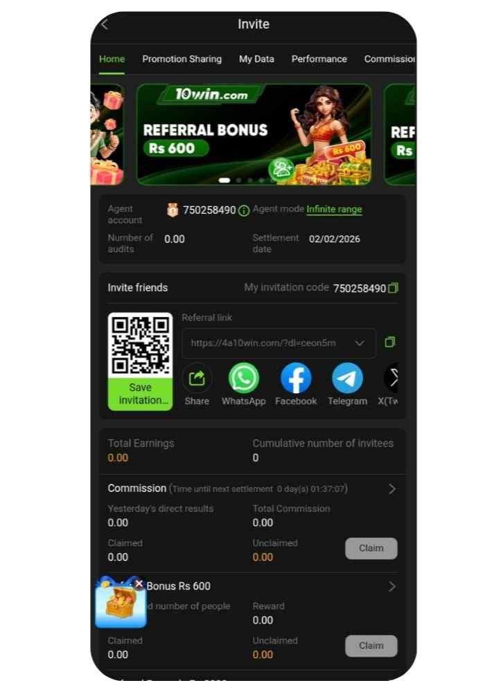 Invite friends using your unique code and earn referral bonuses whenever they register and play. This feature helps build passive income.