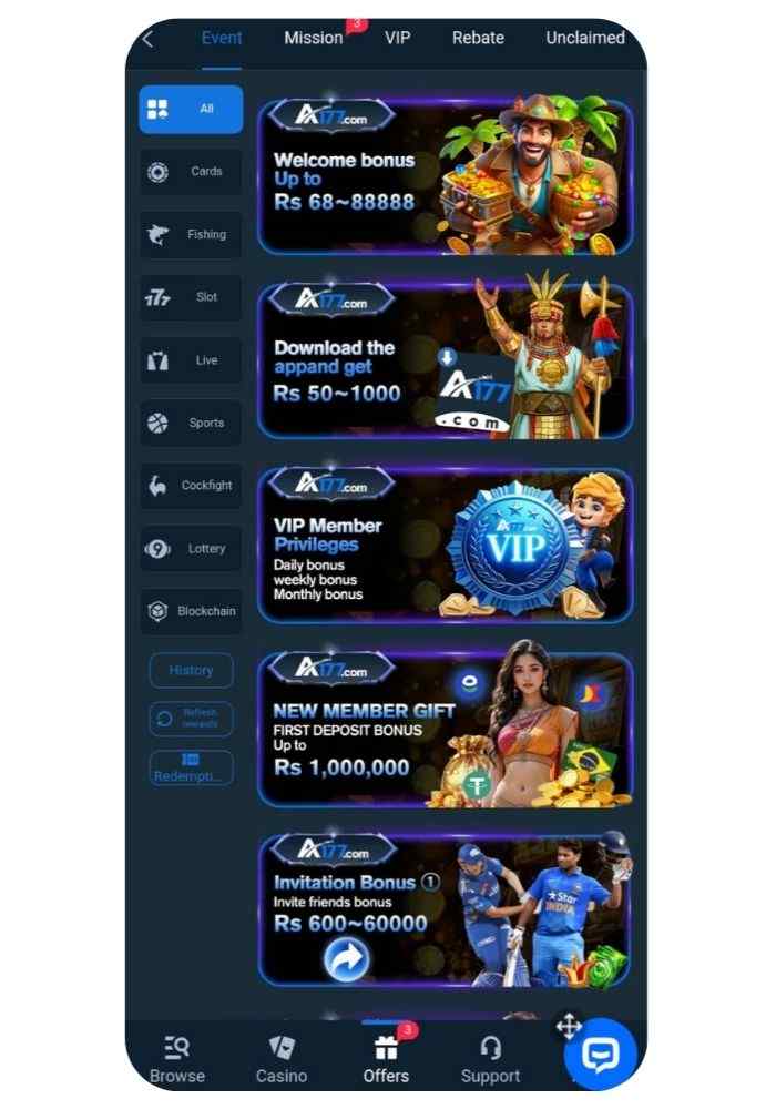 The A177 Game is a mobile casino app that combines entertainment with the opportunity to earn real cash rewards. It offers a collection of different casino-style games like slots, card games, crash games, lottery draws, and other quick-play options. Users can play, place bets, and win money that can later be cashed out using local financial methods popular in Pakistan such as Easypaisa and JazzCash.
