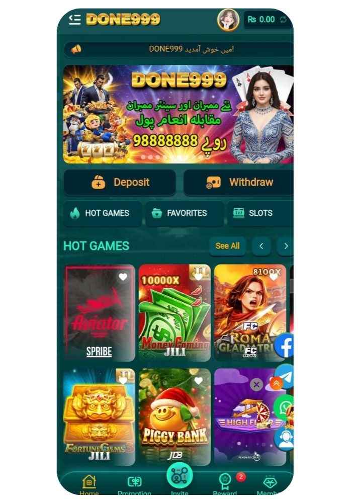 Done999 Game is a mobile gaming application that offers casino-style games and promotional rewards for players.