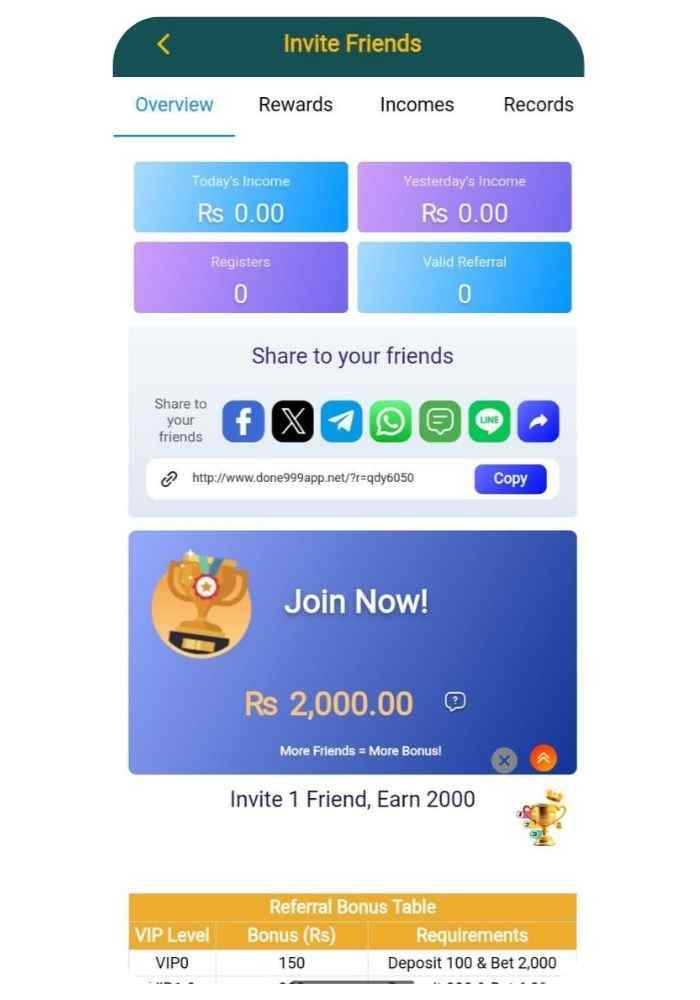 Done999 Game also provides a referral system where users can invite friends and receive rewards when those friends join the platform.