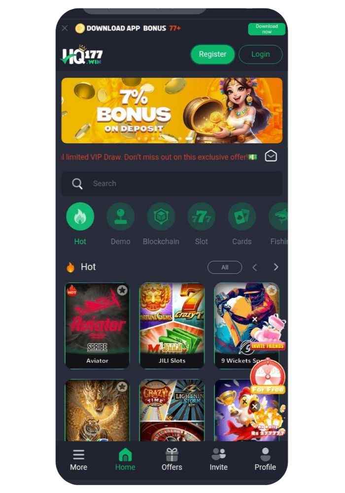HQ177 Game is an online casino-style gaming application where users can play games and earn rewards through gameplay, bonuses, and referrals.