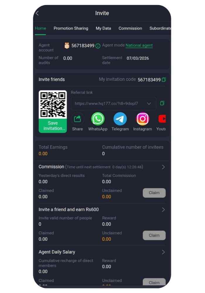 The interface of HQ177 Game is designed to be beginner-friendly, meaning that even people who have never used an earning game before can easily understand how it works. The app also includes referral programs where users can invite friends and earn extra bonuses.