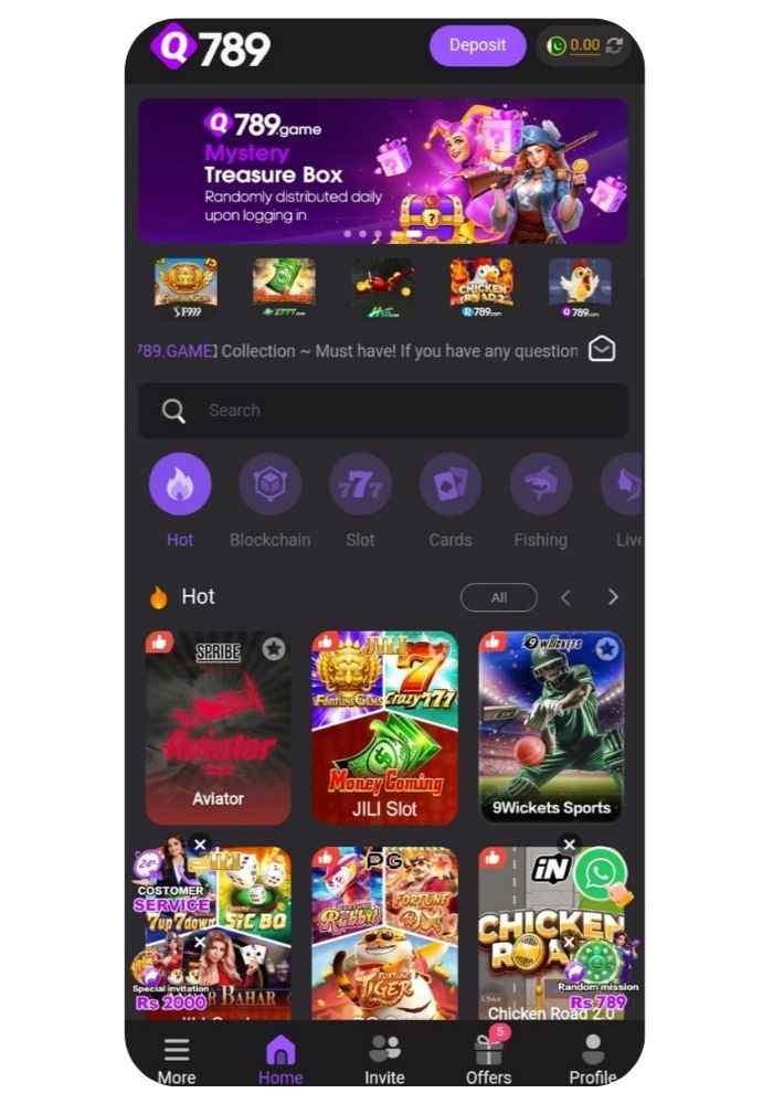 From Teen Patti and Rummy to slots, crash games, and even Ludo and fishing games, Q789 brings hundreds of fun options under one roof.