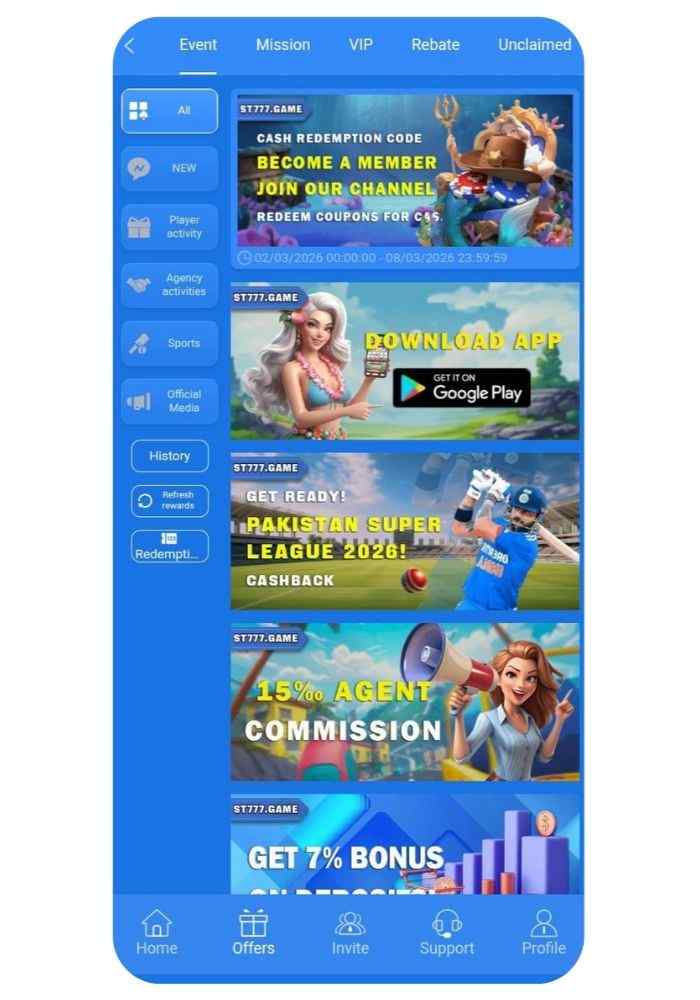 The main idea behind ST777 Game is simple: players join the platform, explore different games, complete missions or challenges, and earn coins or bonuses. These rewards can then be withdrawn using popular Pakistani payment methods such as Easypaisa or JazzCash.
